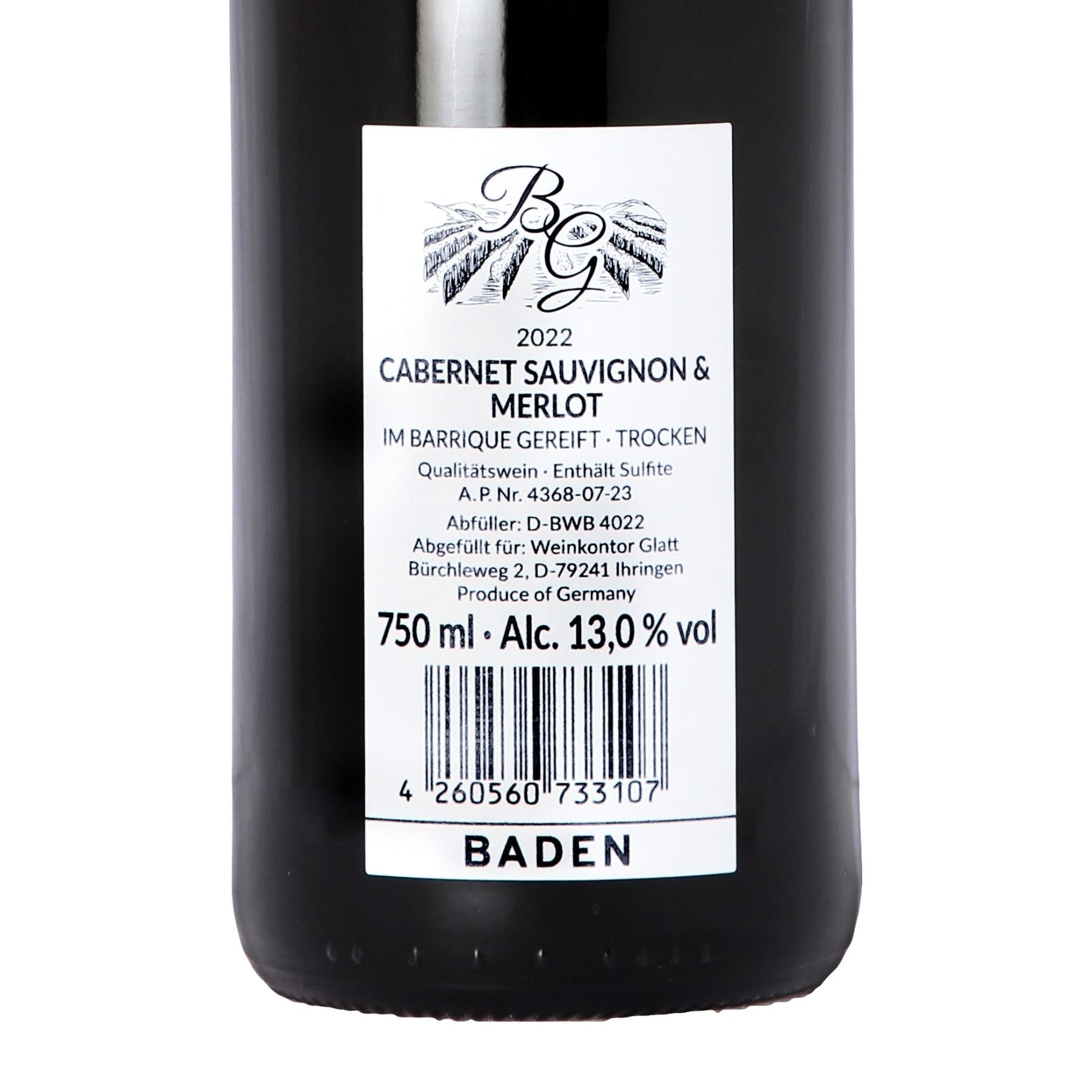 2022 Cabernet Sauvignon & Merlot Barrique Rotwein trocken • GLATT • Qualitätswein vom Kaiserstuhl/Baden, Deutschland